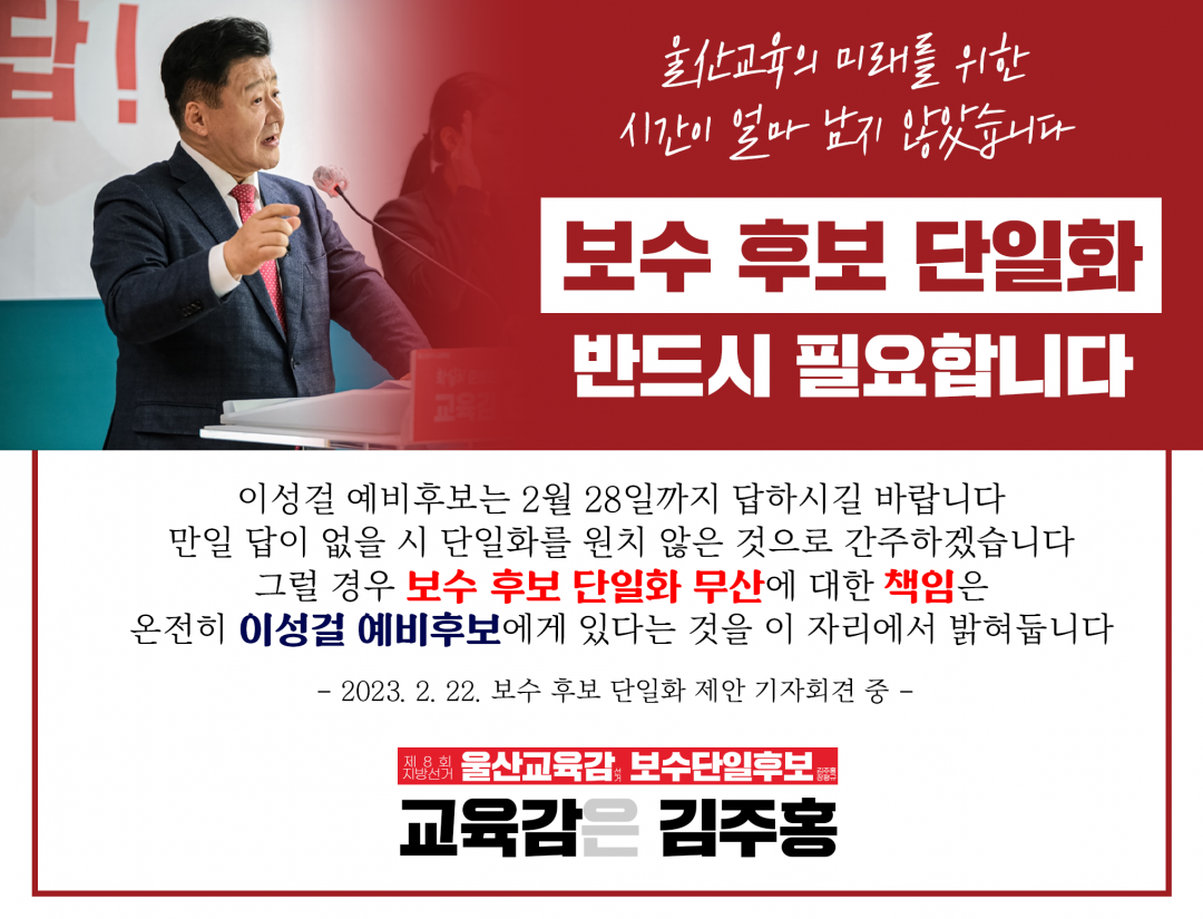 보수후보 단일화 촉구 제안 기자회견 2월 22일 페이지 정보 작성자 플랜비 댓글 0건 조회 475회 작성일 23-03-25 12:37 본문 보수후보 단일화 촉구 제안 기자회견 2월 22일 목록 이전글이성걸 선대위와 원팀구성 기자회견 3월2일 23.03.25 다음글세부공약 기자회견 제4차 2월 21일 23.03.25